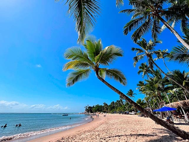The longest beaches are located on the ocean side of the Peninsula. With strong waves, good for surfing, they have white sand and coral reefs which form natural swimming pools at low tide. On the other side of the Peninsula, facing the Camamu Bay, beaches are smaller, with calm and not very deep water.