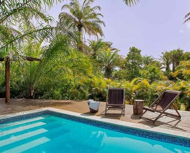 Luxurious house in a gated community 50 steps from the beach. 650m2, with 5 finely decorated suites and full maid's quarters. The house accommodates 18 people. Swimming pool, gourmet area with barbecue and lounges, beer cooler and games room. Full kitchen, 3 refrigerators, washing machine, dishwasher, microwave and cooktop. All rooms have air conditioning, Wi-Fi, and generator!